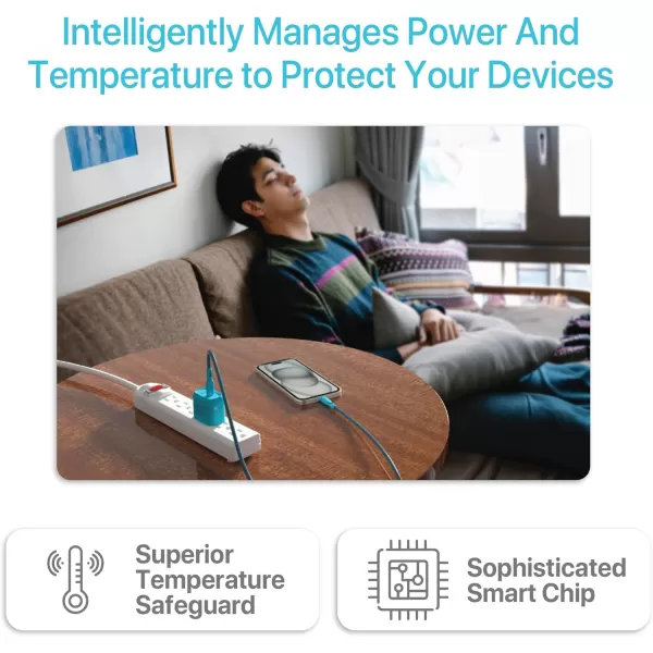 GaN Technology for Temperature Safety — The Type C wall adapter is equipped with GaN technology featuring a superior temperature safeguard, ensuring efficient and safe charging